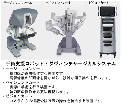 一方、特に直腸がんにおいては、骨盤内の狭い空間で直線的な鉗子を用いて行う腹腔鏡手術は、より高度な技術を要する難易度の高い手術とされています。その欠点を補うために1990年代に米国で手術支援ロボット(ダヴィンチ・サージカルシステム)が開発され、本邦でも2018年4月から、直腸がんに対するロボット支援下手術(ダヴィンチ手術)が保険適応となりました。